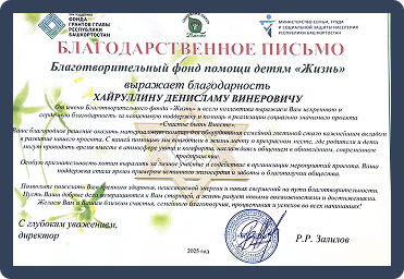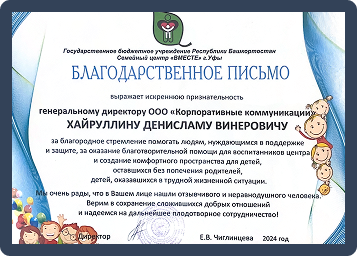 Мы на регулярной основе оказываем финансовую поддержку региональной организации, которая занимается оказывает помощь детям сиротам, детям с ограниченными возможностями и родителям с детьми в трудной ситуации.